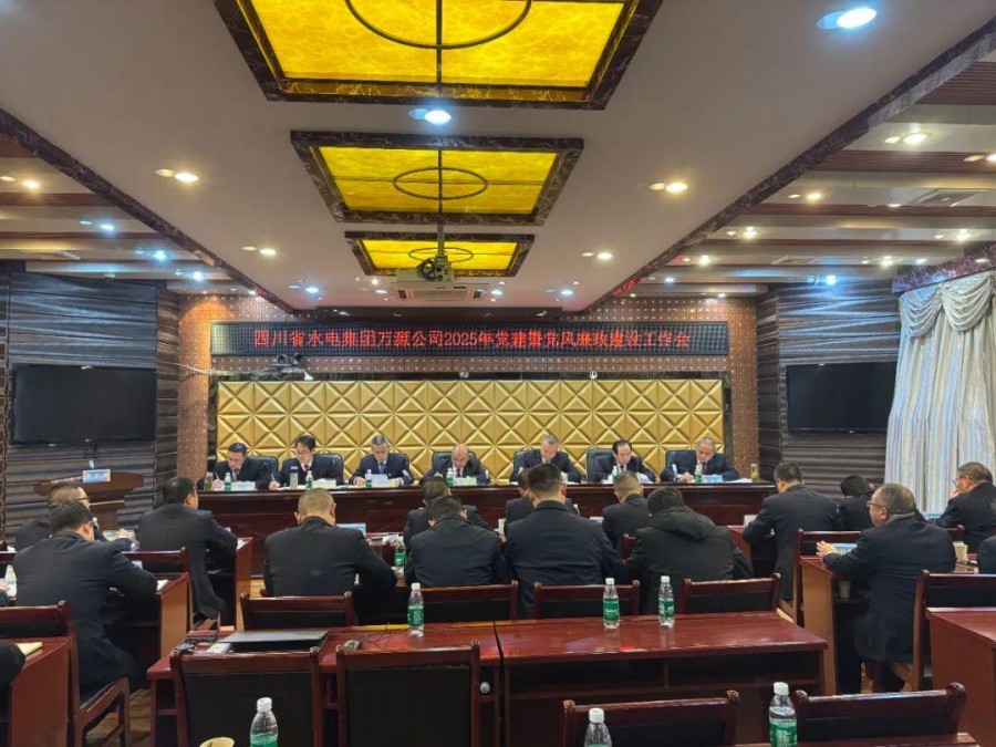 2025年1月9日,四川省水電集團萬源公司召開2025年黨建暨黨風廉政建設工作會,黨委書記吳偉昌出席會議并講話。領導班子成員、黨支部書記、部門站所負責人參加會議。